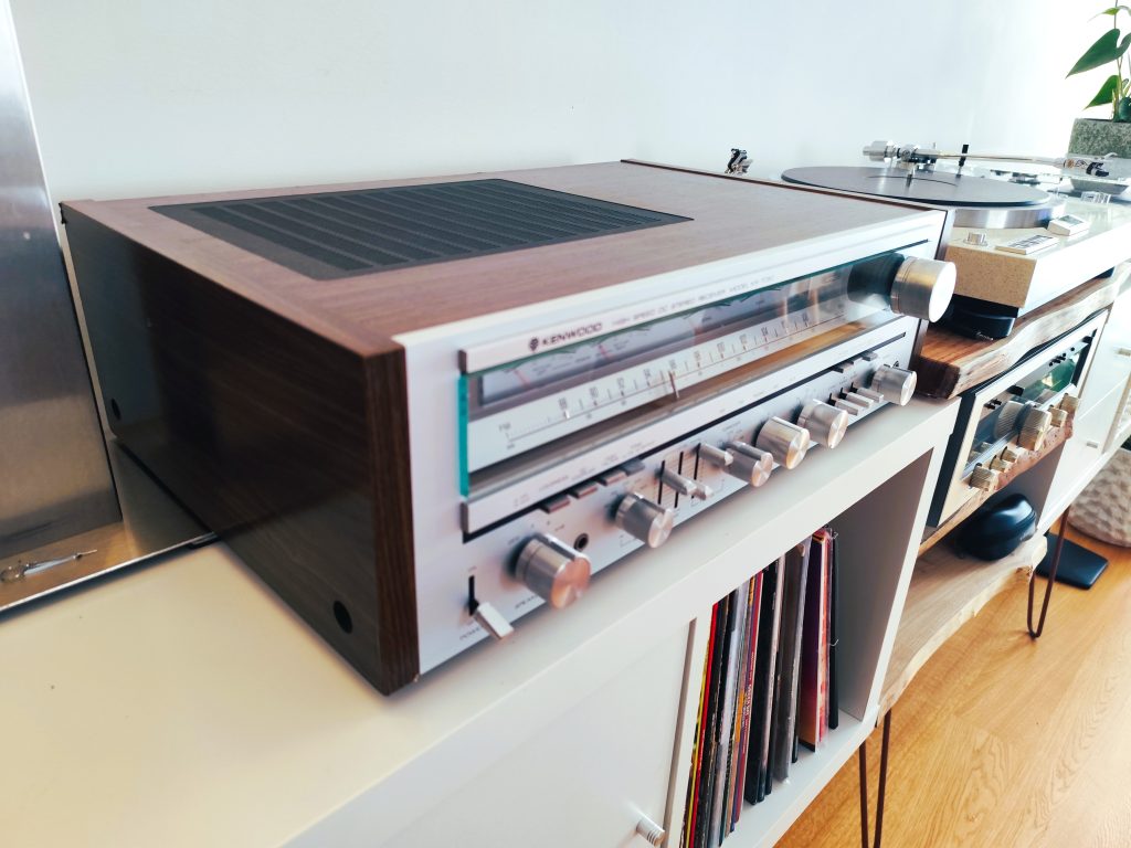 This is the Kenwood KR-7050 High Speed DC Stereo Receiver from 1979–1980 — a true powerhouse from the golden age of solid-state audio. It’s big, beautiful, and delivers a bold, dynamic sound that’s unmistakably vintage Kenwood. Physically, the KR-7050 stands out with its brushed aluminum faceplate, soft blue and amber lighting, and four illuminated analog […]